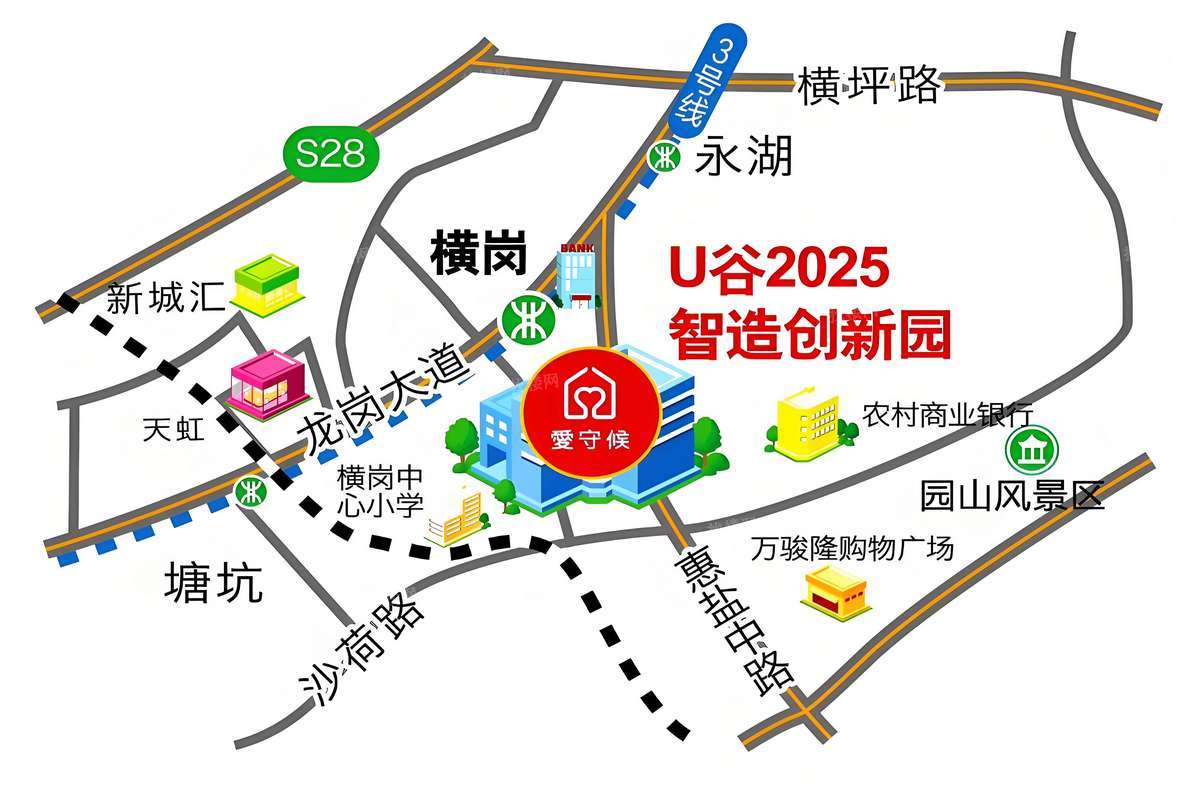 U谷2025智造创新园 龙岗区-横岗 27元/m²/月起 距离[3号线-横岗站]约1公里出租面积:58-1896m² 产业园 低价出租 创业孵化器